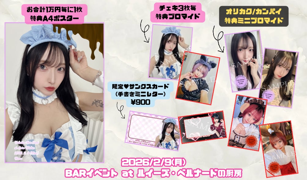 ★お会計1万円ごとに1枚らむ/姫乃/さやかA4ポスターまたはあん/姫乃/さや香/マイコブロマイド1枚付き